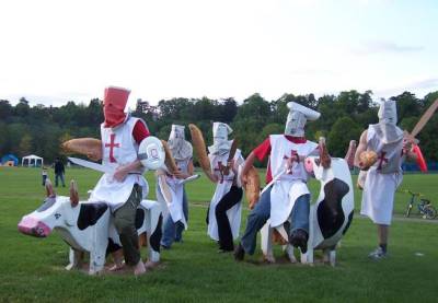 Welch freudiges Erwachen, es schien die Sonne! Markus hat unseren Vorräten noch einen Platz in der Kühlkammer besorgt und Seppel acht Baguette-Leiber, ach nein Lanzen, aber dazu später, gekauft und dann hieß es warm machen und heiß werden, denn schließlich wollten wir nicht wieder unsere erstes Spiel verschlafen. Judith und Markus konnten trotz guter Vorsätze nicht spielen und auch Konnys Knie war für eine kleine Pause. Aber Monkey Foo konnten wir dennoch schlagen, das Spiel war deutlich 9:2, nicht besonders schön, aber immerhin unser erster Sieg. Und Markus konnte bei dem guten Wetter endlich seine Kamera auspacken. Die nächsten Gegener Voladora, Italiener. Irgendwie war ein Zwischentief erreicht, und wir haben den Ausweg nicht gefunden, viele Scheiben verworfen und zu guter letzt verloren. Wenigsten versicherte uns Christoph, dass wir auch diesmal die besser Mannschaft gewesen wären, aber Kondition, Konzentration… den Rest kennt Ihr ja. Aber zumindest bekamen wir von unseren Gegnern noch eine kleine Massage. Konny übernahm den Scheibenvorstand, Maze ließ sich seinen angeschlagenen Rücken massieren und wir warteten auf unser letztes Spiel im Sonnenschein. Gegen Mubidisk, Spanier. Alle hatten sich nochmals zusammengerissen und wir kämpften. Verwirrten sie mit immer neuen Taktiken, aber der Wind und die zahlenmäßige Überlegenheit der anderen machte uns zu schaffen und so konnten wir das Spiel nicht für uns entscheiden. Aber Inga kam wenigsten noch vor eine laufende Kamera und was Pablo beim Lineup erzählt hat kam uns allen ziemlich Spanisch vor. Ein weiter Wettkampf stand allerdings noch aus: der Tequila Body Shot Race. Pablo und ich sind losgedived, konnten in poleposition an Alex und Franzi übergeben, aber die sind irgendwie abgerutscht. Der Grill wurde angeheizt das mitgebrachte Buffet aufgebaut, unserer halbes Würstchen Felix zum Grillvorstand ernannt und das Ritteressen konnte beginnen. Davor wurden ein Teil der Kreuzritter allerdings noch auf einen Feldzug geschickt, perfekt ausstaffiert von Inga, mit Scheiben-Schilden, Zeitungs-Helmen und Brotlanzen, konnten sie auf wilden Kühen reitend (hier muss man in der Geschichtsschreibung noch mal nachhacken), wichtige Bastionen einnehmen. Es wird gemunkelt, dass sogar noch Videoaufnahmen aus dieser Zeit existieren. Gut gestärkt zogen wir schließlich alle in den Kampf mit der Party als Ziel. Wir konnten in geschlossener Zweierformation die Außenposten überlisten und haben sogleich die erste Burg gestürmt und das Burgfräulein nur noch unter der Ausgabe von Alkohol wieder freigegeben, allerdings fielen ein paar unserer tapferen Kämpfer dem Drachen zum Opfer. Der größere Feind war am Ende aber doch die Müdigkeit und auch der letzte Stoßtrupp verließ die echt gelungene Party bereits gegen 3 Uhr.